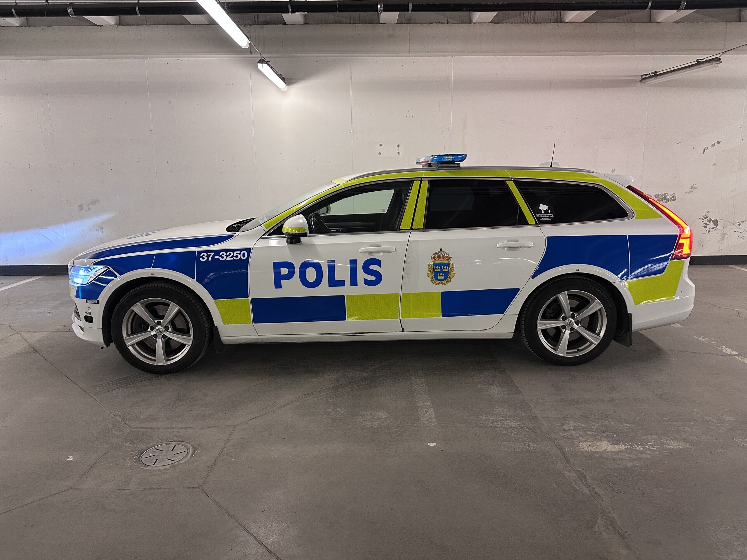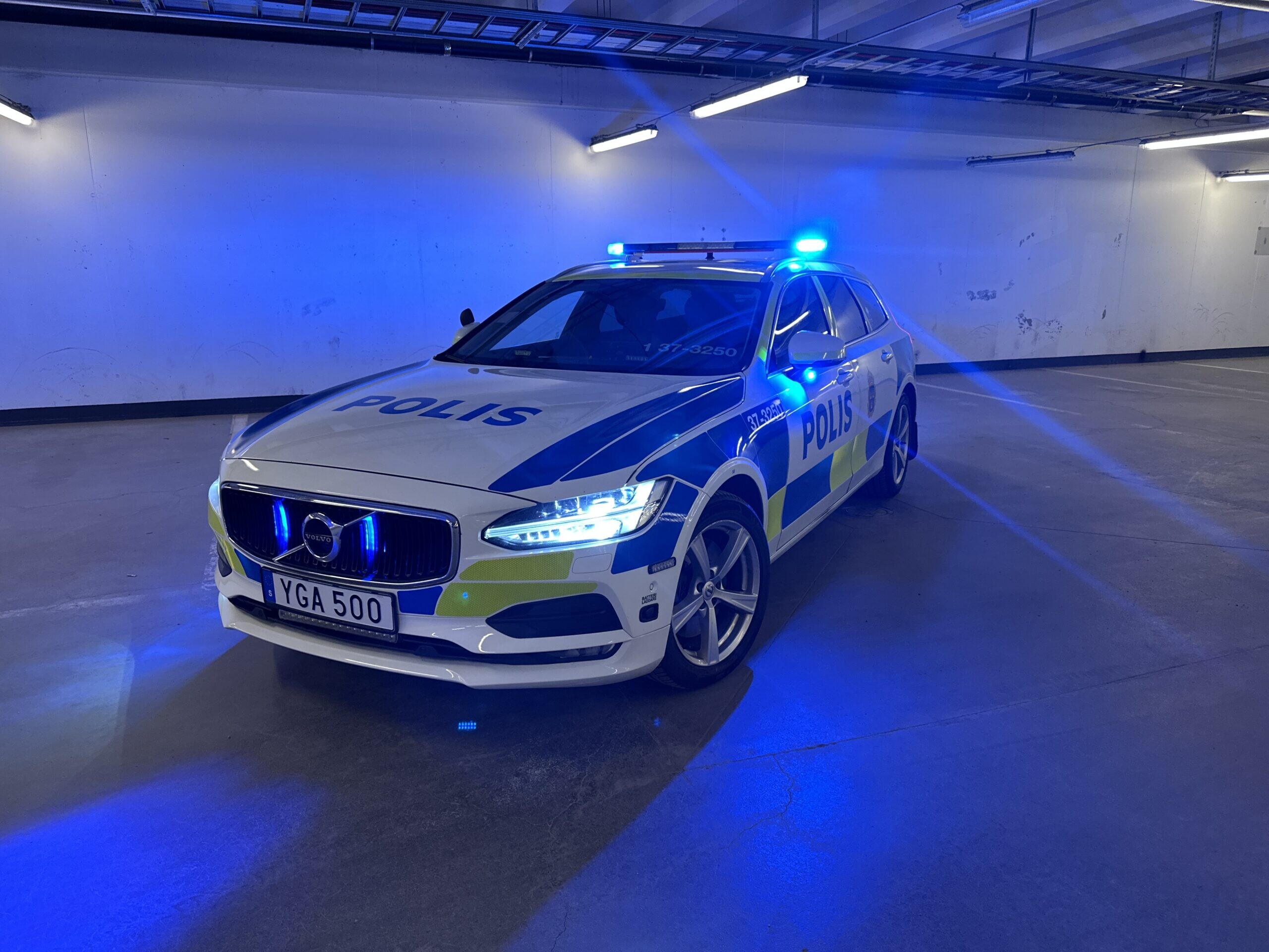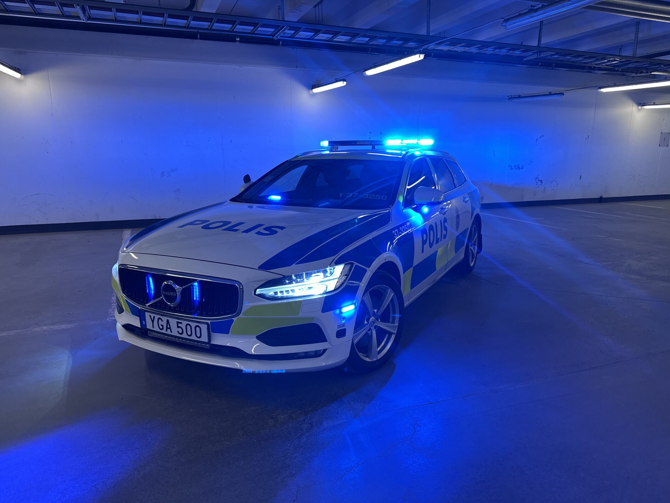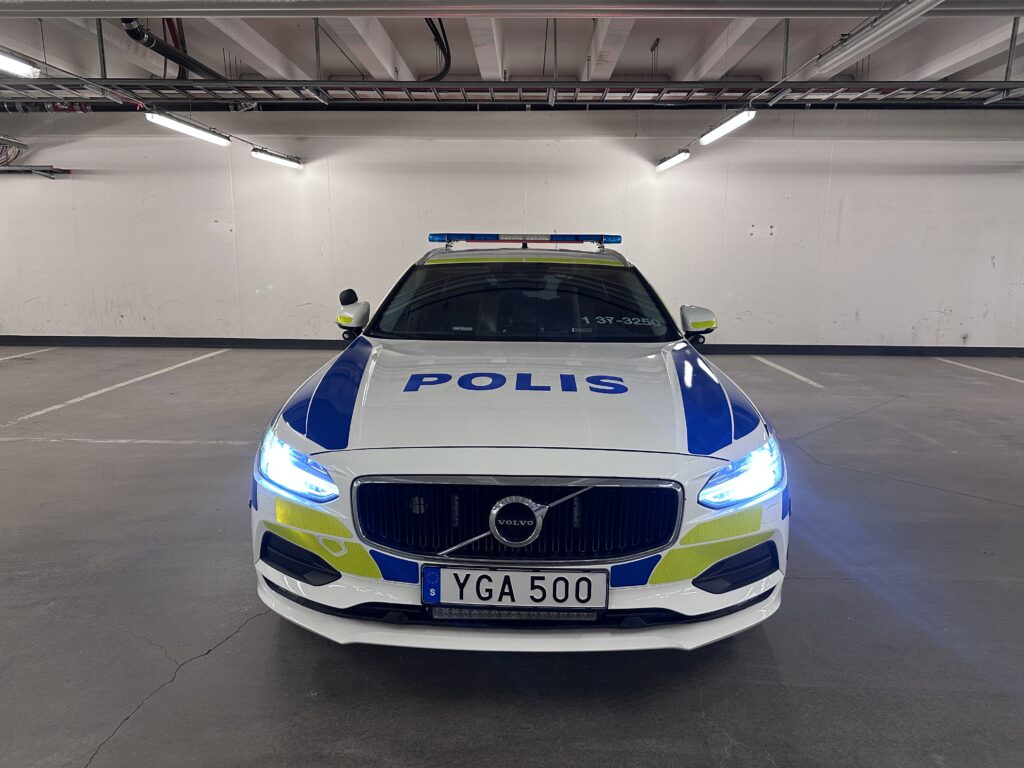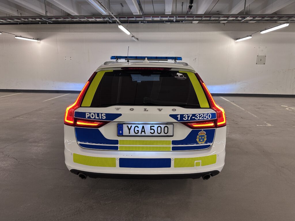 Denna polisbil är en Volvo V90 med fungerande blåljus, siren, stoppsignaler etc. Detta fordon är även polisiärt utrustat interiört.